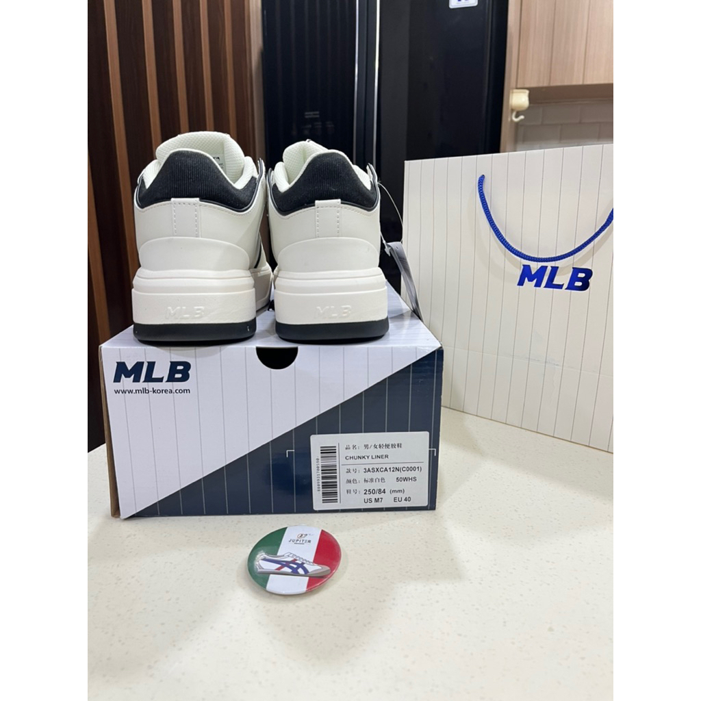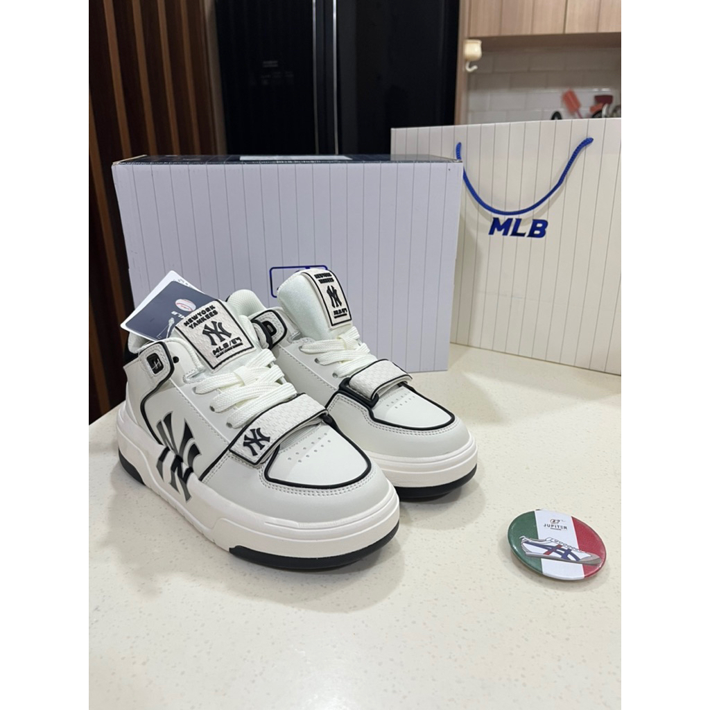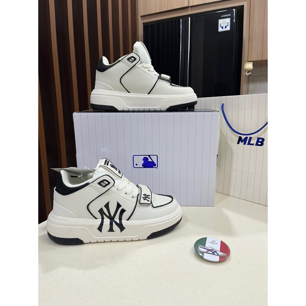 Sepatu MLB Chunky Liner Mid New York White Black /MID