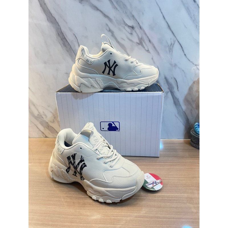 Sepatu MLB YANKESS Chunky Clasis Cream Black /LEATHER