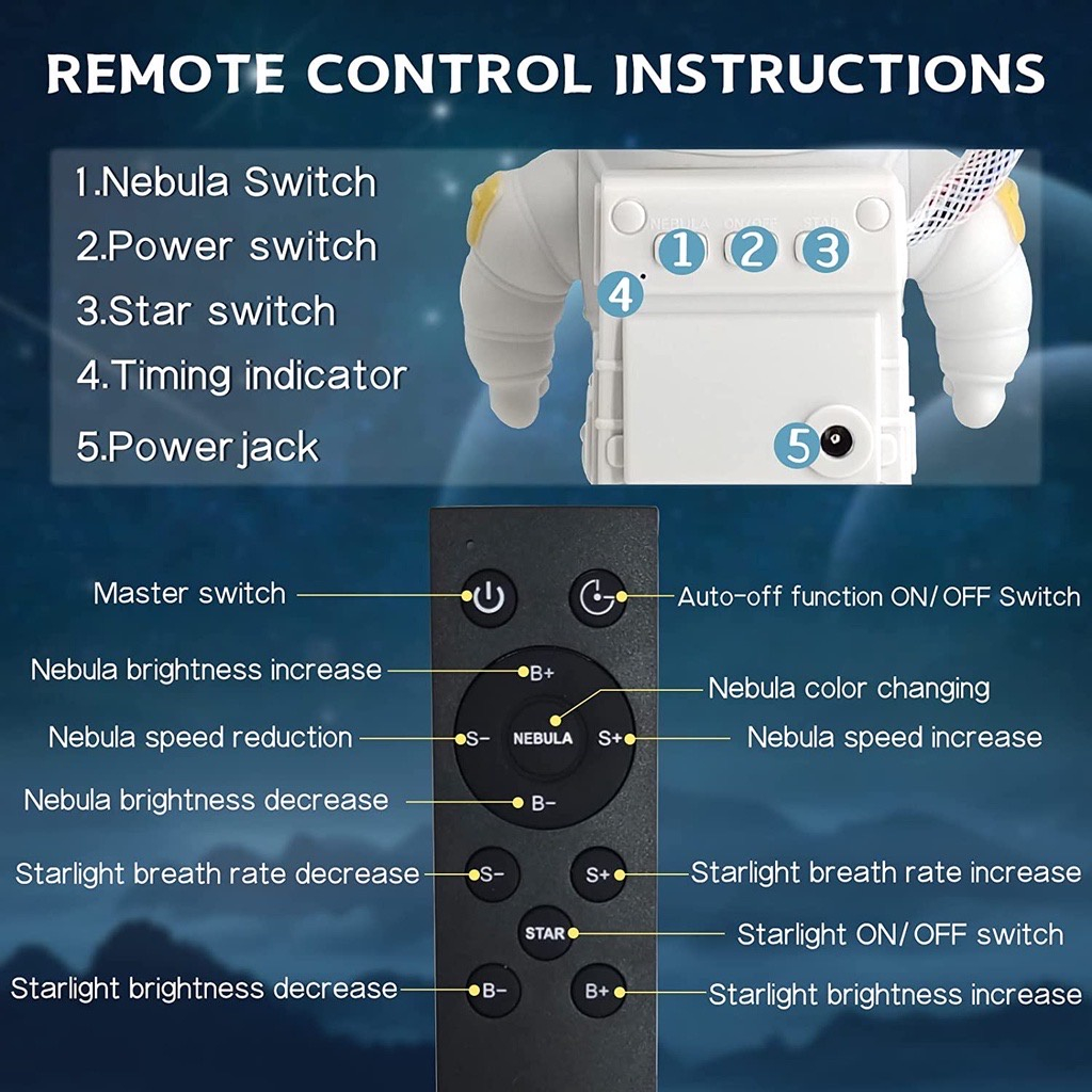 DL Galaxy Star Projector Night Light Astronot Starry Sky Lamp Home Room proyektor astronot