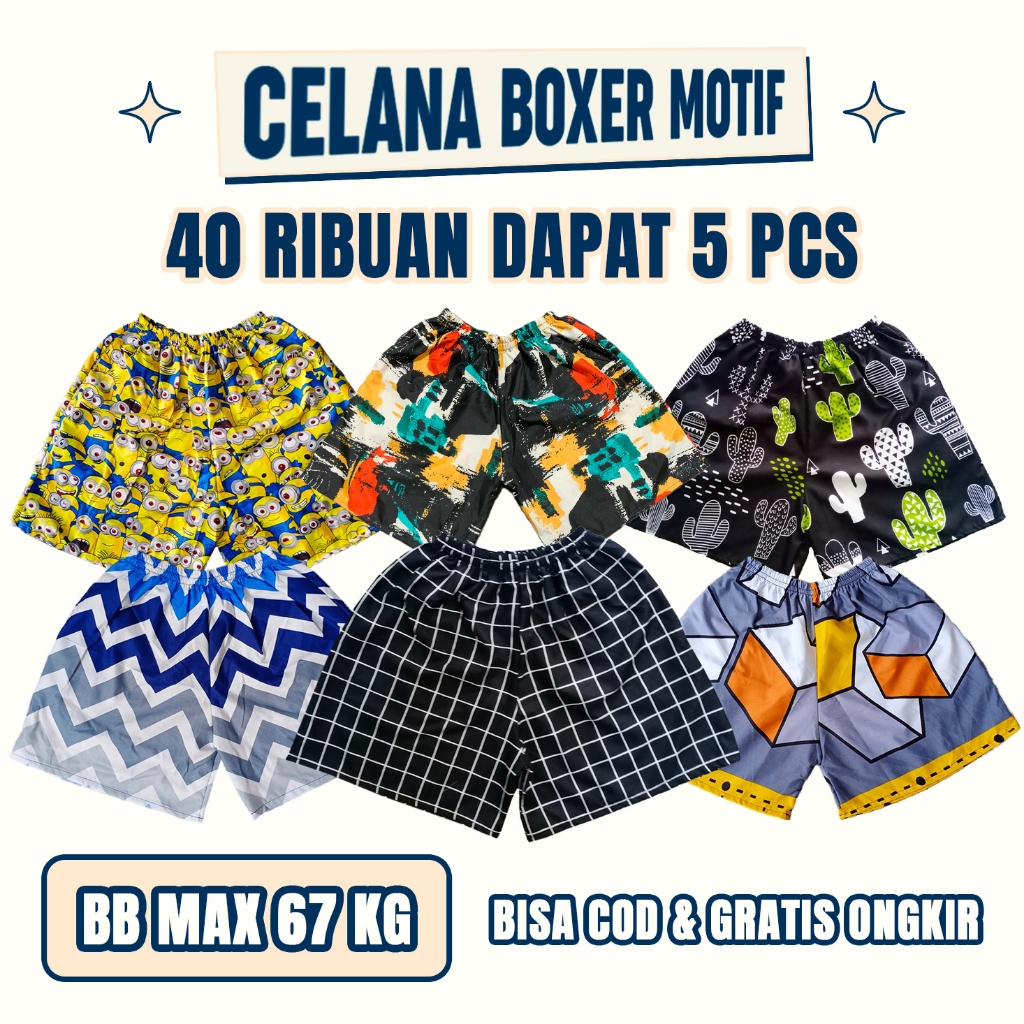 Celana Boxer 5 PCS Boxer Pria All SIze Celana Boxer Motif Unisex Celana Kolor Terlaris Boxer Murah Boxer Kekinian