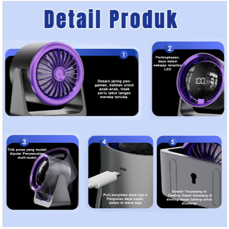 Kipas Dinding Digital Display Kamar Tidur / Meja Kantor Digital Mini Portabel USB – Layar LED