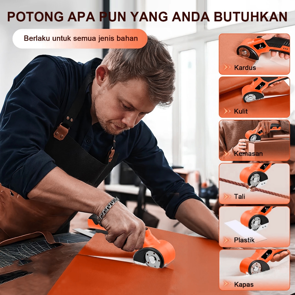 DISKOOM Mesin pemotong kain, gunting listrik cas, mesin pemotong pisau bundar, mesin pemotong kain kecil, tipe genggam u