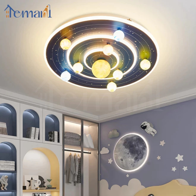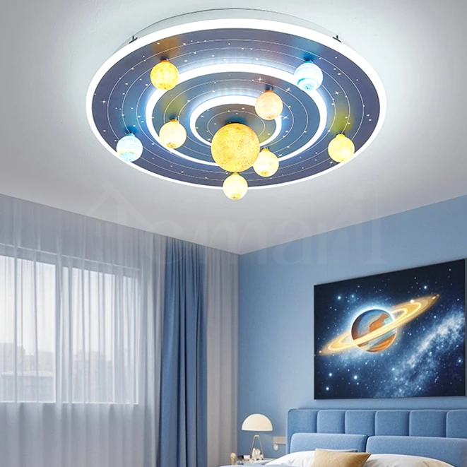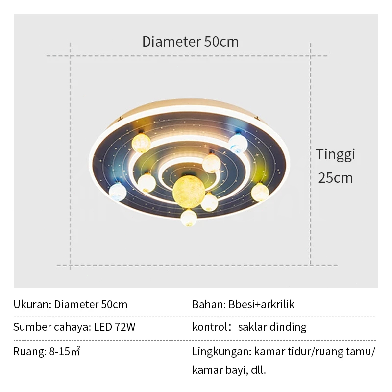 Lampu Gantung Plafon Dekorasi Kamar Anak Model 9Planet Kamar Anak Laki-laki Lampu Hias Gantung Minimalis Modern 3warna 5