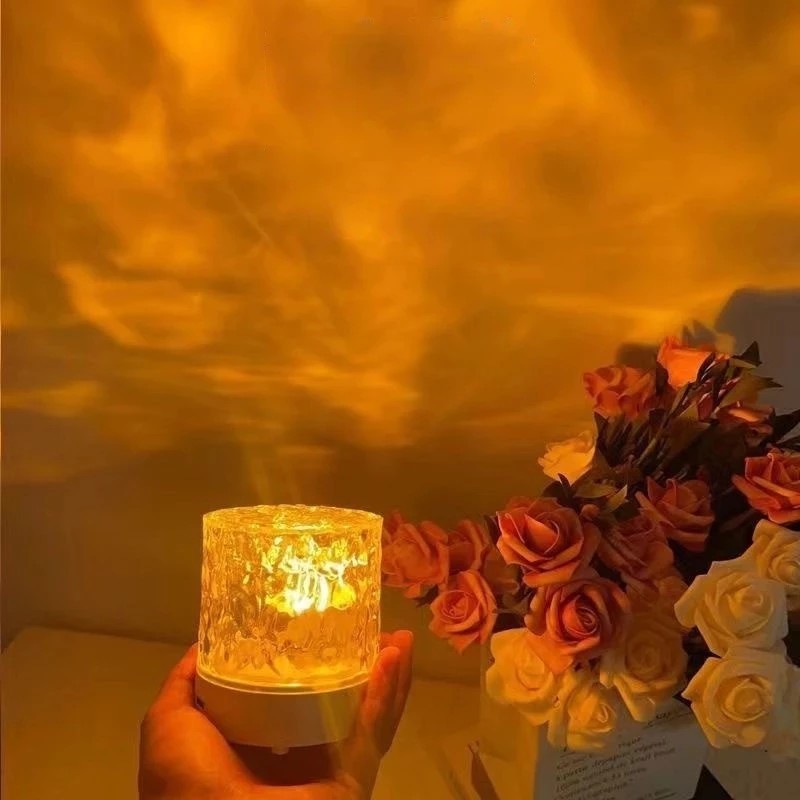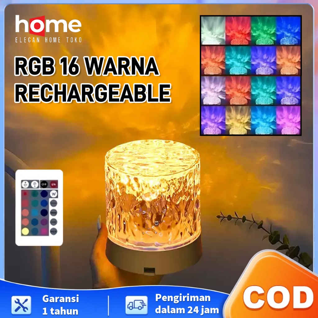 E.Home Lampu Meja 16 Warna Lampu LED Kamar Lampu Tidur Aesthetic Lampu Proyektor Kristal Adjustable Lampu Tidur Remot L