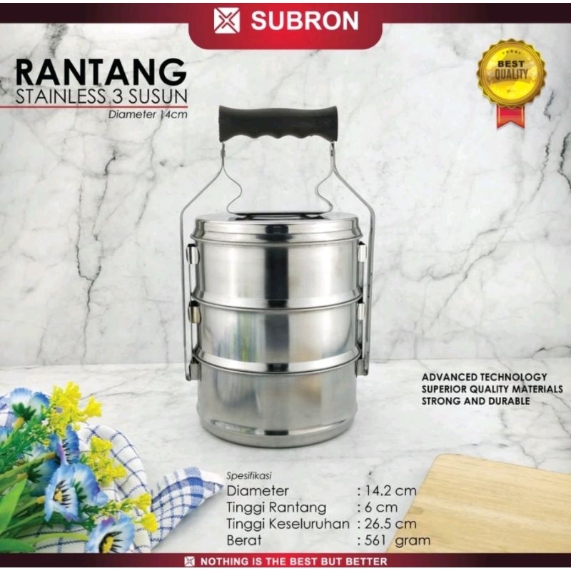Rantang Susun Stainless Steel SUBRON 14cm Susun 2,3 & 4 Premium Quality