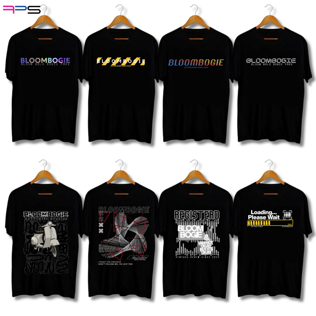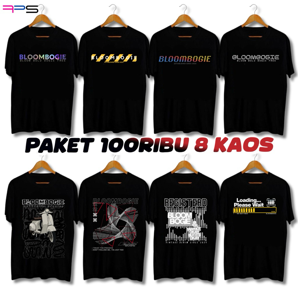 Paket 100ribu 8 Kaos Baju Distro Bloombogie Spesial Black Edition I Semi katun I Distro Pria wanita