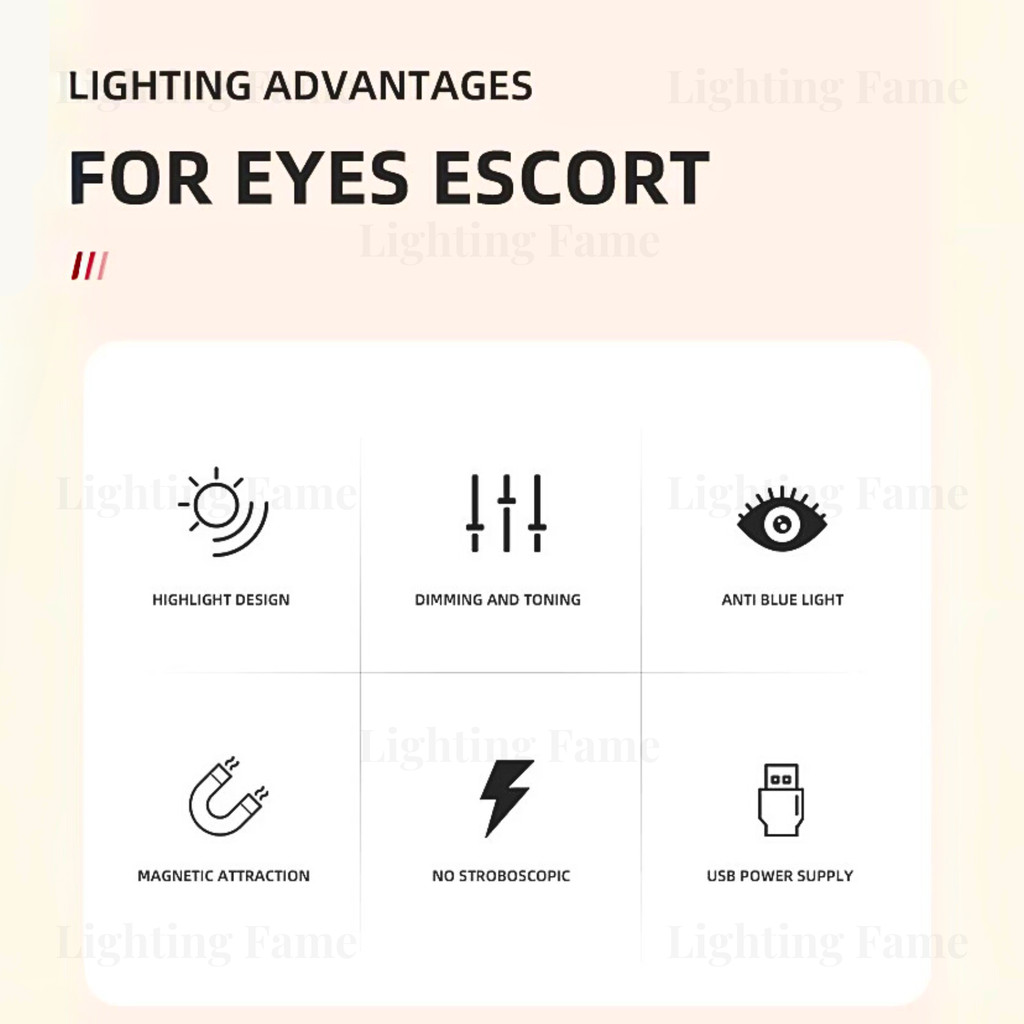 LIGHTING FAME **GARANSI 1 TAHUN** Lampu Belajar LED Magnetic Multifungsi Lampu Meja Belajar Sensor Sentuh Lampu Lemari T