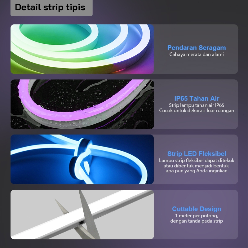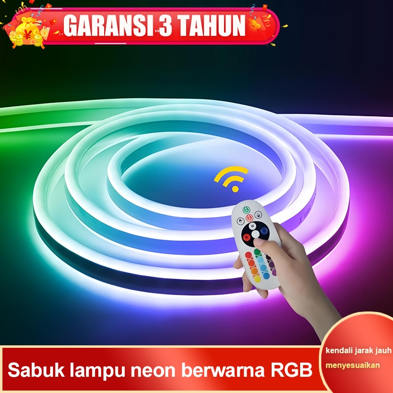 Lampu LED Neon Fleksibel 220V RGB untuk Dekorasi Kamar Tidur Aesthetic, Tahan Air 3M-20M