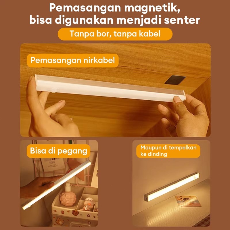 Lampu Sensor Gerak LED Nirkabel Self-Adhesive & Magnetik untuk Ruang Tamu Lemari Rak Sepatu Lampu Lemari Tempel Otomatis