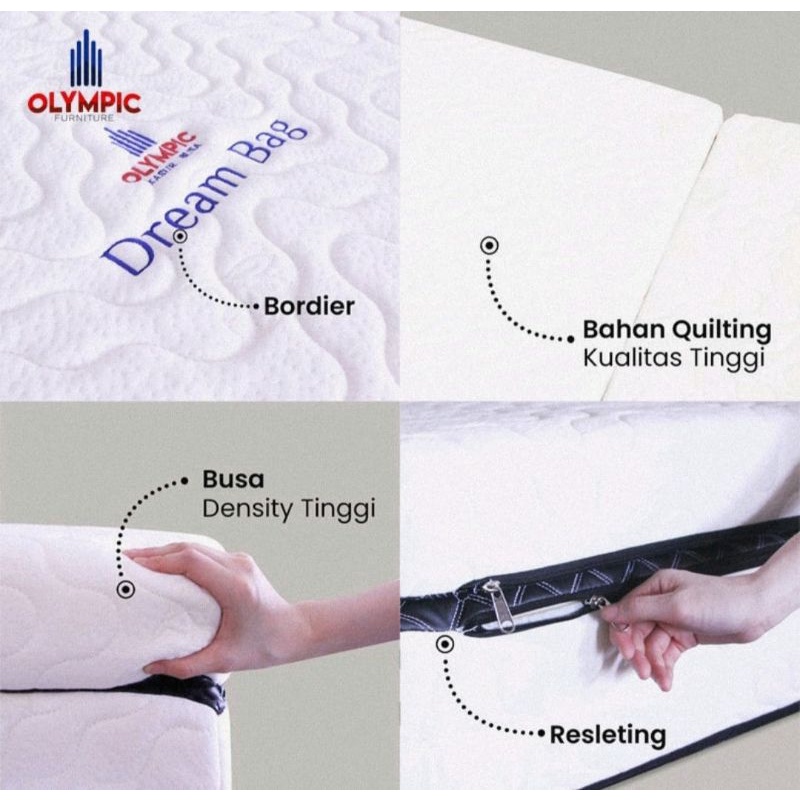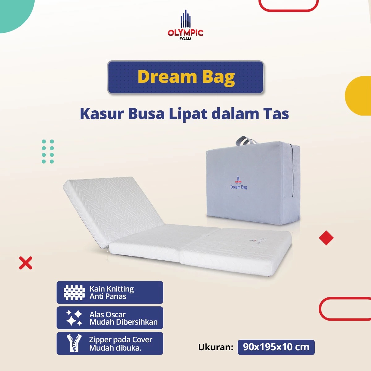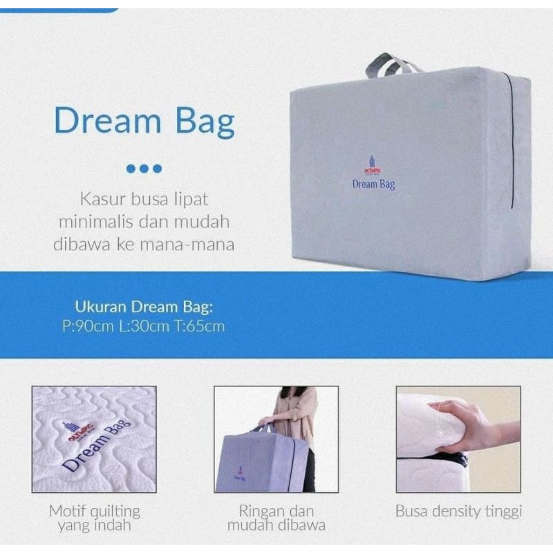 KASUR BUSA OLYMPIC LANTAI LIPAT DREAM BAG PUTIH TRAVEL BIRU TEBAL 10 CM UKURAN 90X195 BUSA MURAH