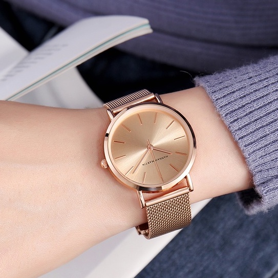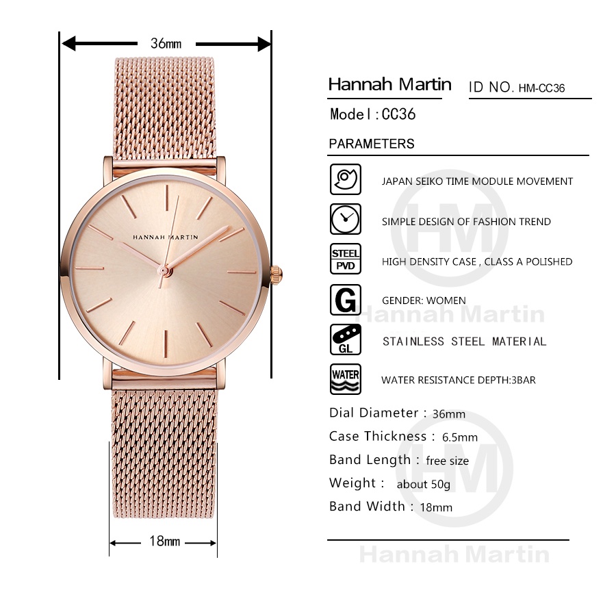 HANNAH MARTIN Jam Tangan Wanita 100% Original Tahan air CEWEK Quartz stainless steel Mesh Analog Women Watch Arloji CC36