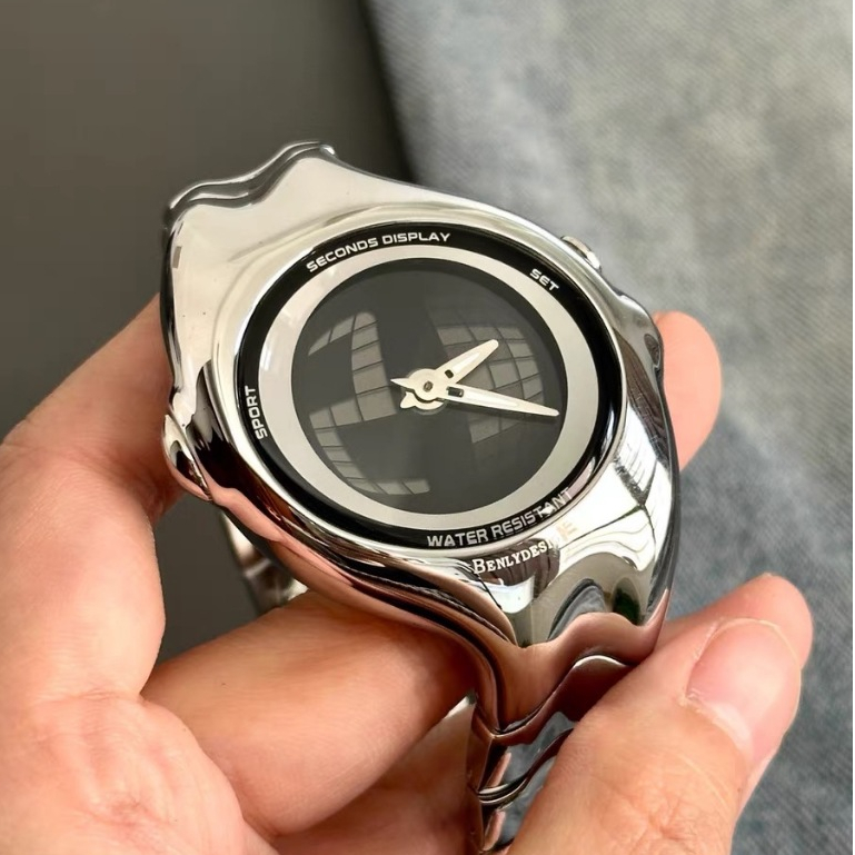 Y2K Style Men’s Irregular Quartz Watch - Stainless Steel Strap, Waterproof & Trendy Retro Design -
