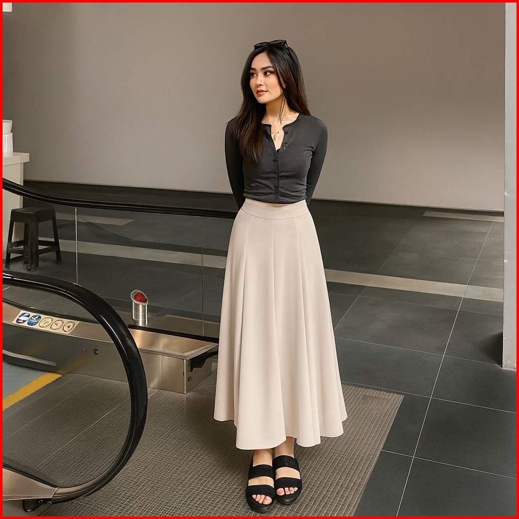 Audy Skirt Rok Wanita - Rok Payung Loose Maxi Korean Style Basic Polos Anti Kusut