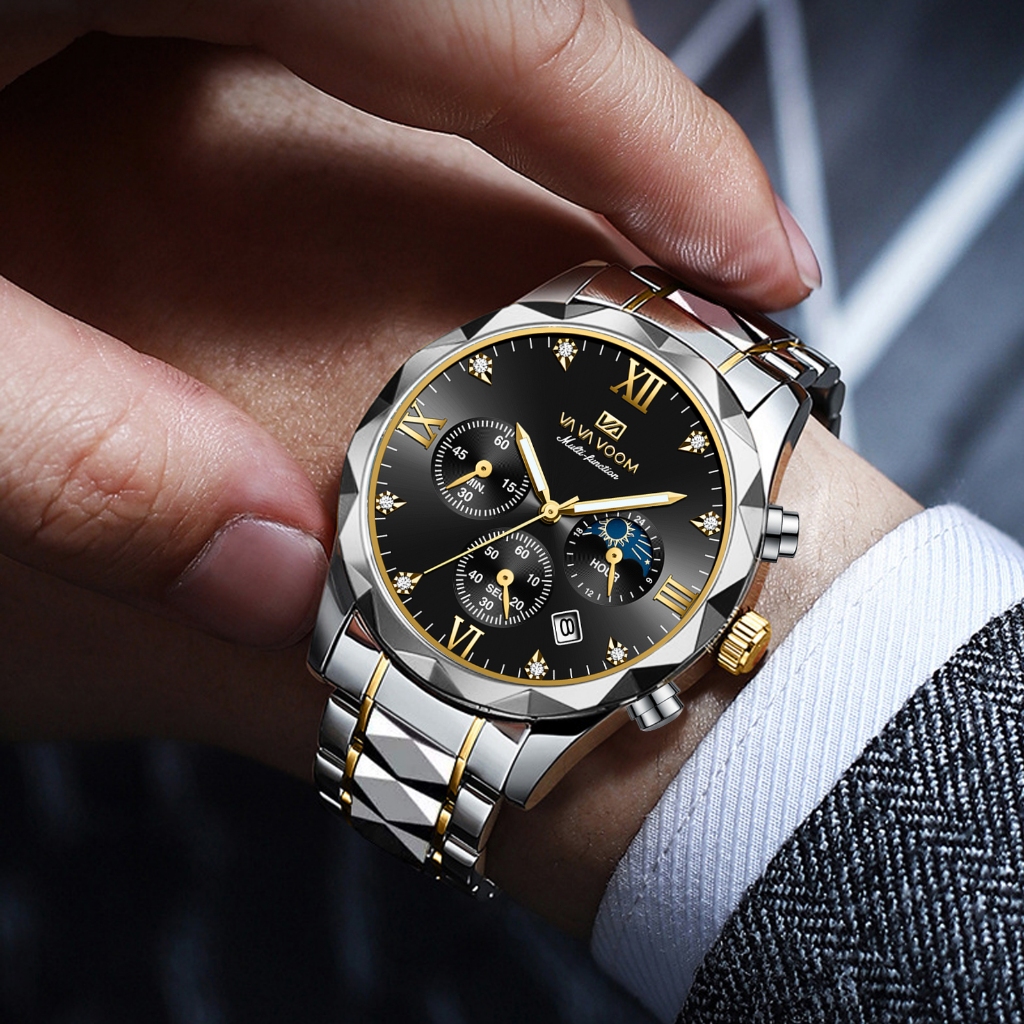 VAVAVOOM Jam Tangan Pria 100% Original Chrono Aktif Sporty Tahan air COWOK Kronograf LUMINOUS Quartz Analog tanggal Laki