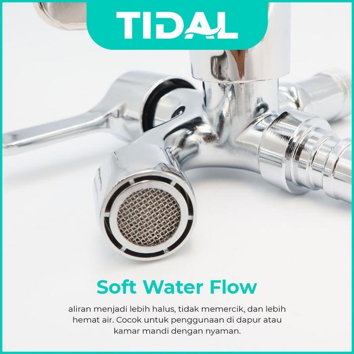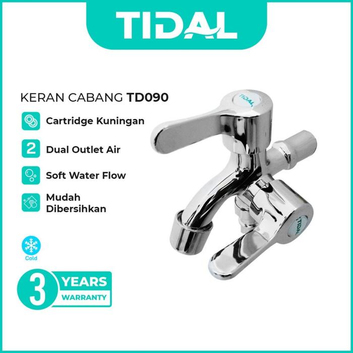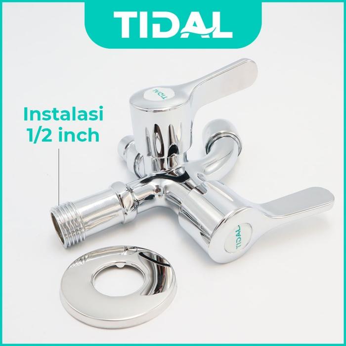 TIDAL Kran Air Tembok Cabang Mesin Cuci Keran Air Dingin Chrome Tebal Modern Tidal TD090