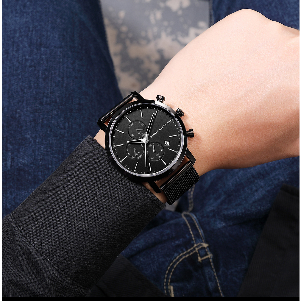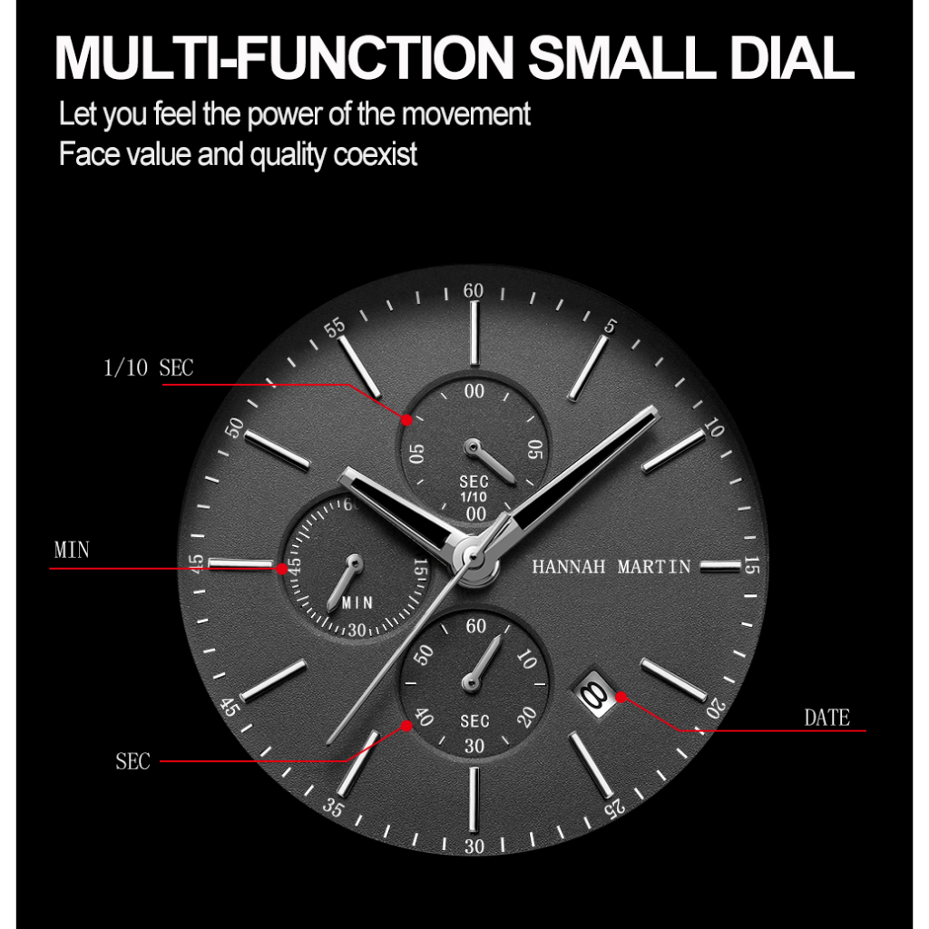 HANNAH MARTIN Jam Tangan Pria 100% Original Kronograf Tahan air COWOK Quartz Analog Laki 109G
