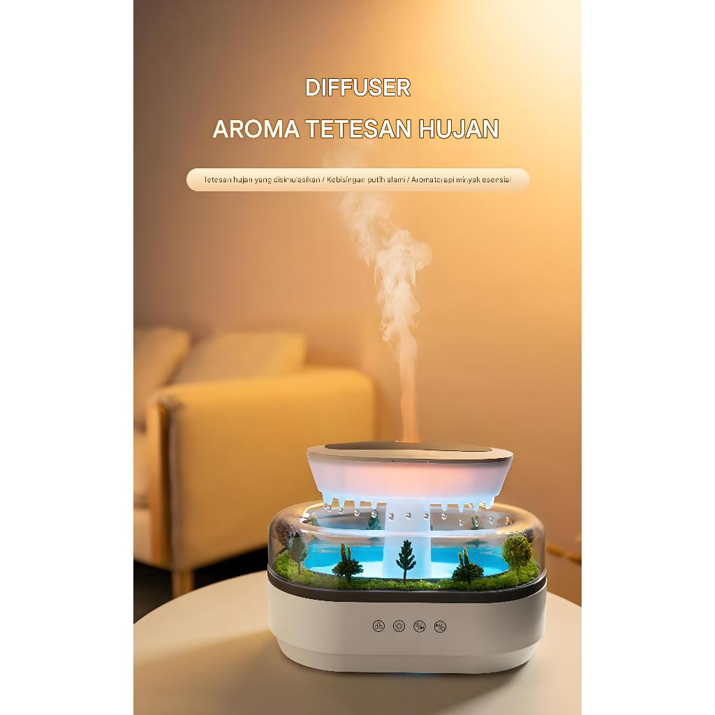 HT diffuser aromatherapy pelembap tetesan hujan lanskap mikro, rumah tangga, suasana penuh warna, lampu, penyebar minyak