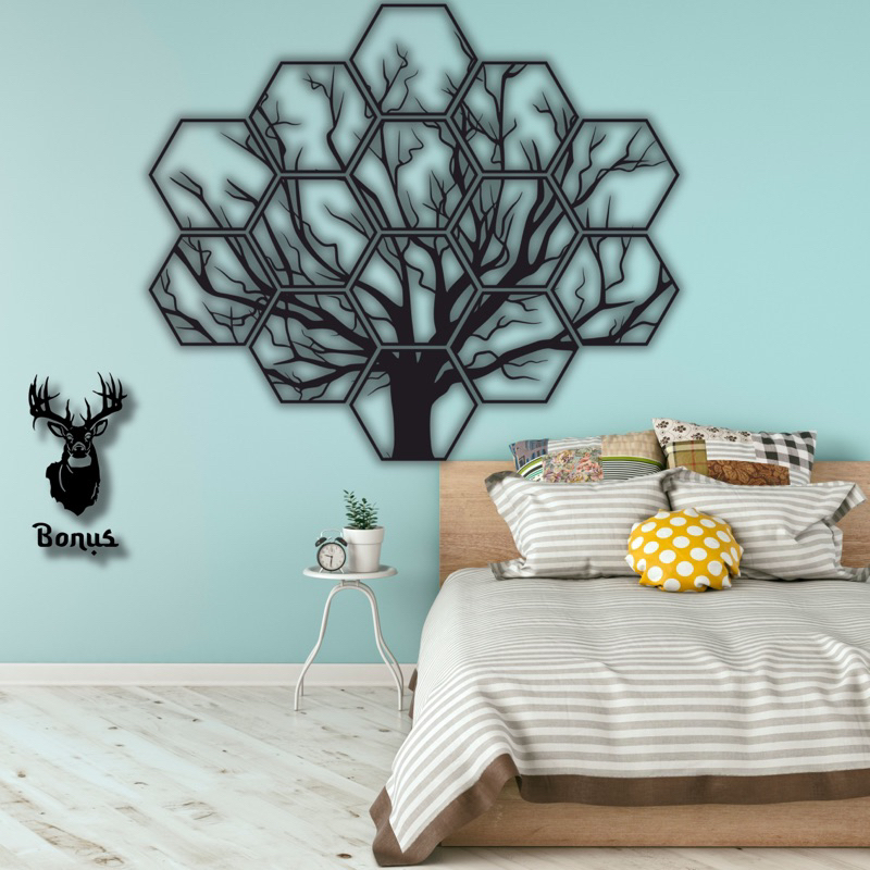 KREASI KAYU 3D UKURAN BESAR HEXSAGONAL ANIMAL 1 SET ISI 15 PANEL/ WALL DECOR