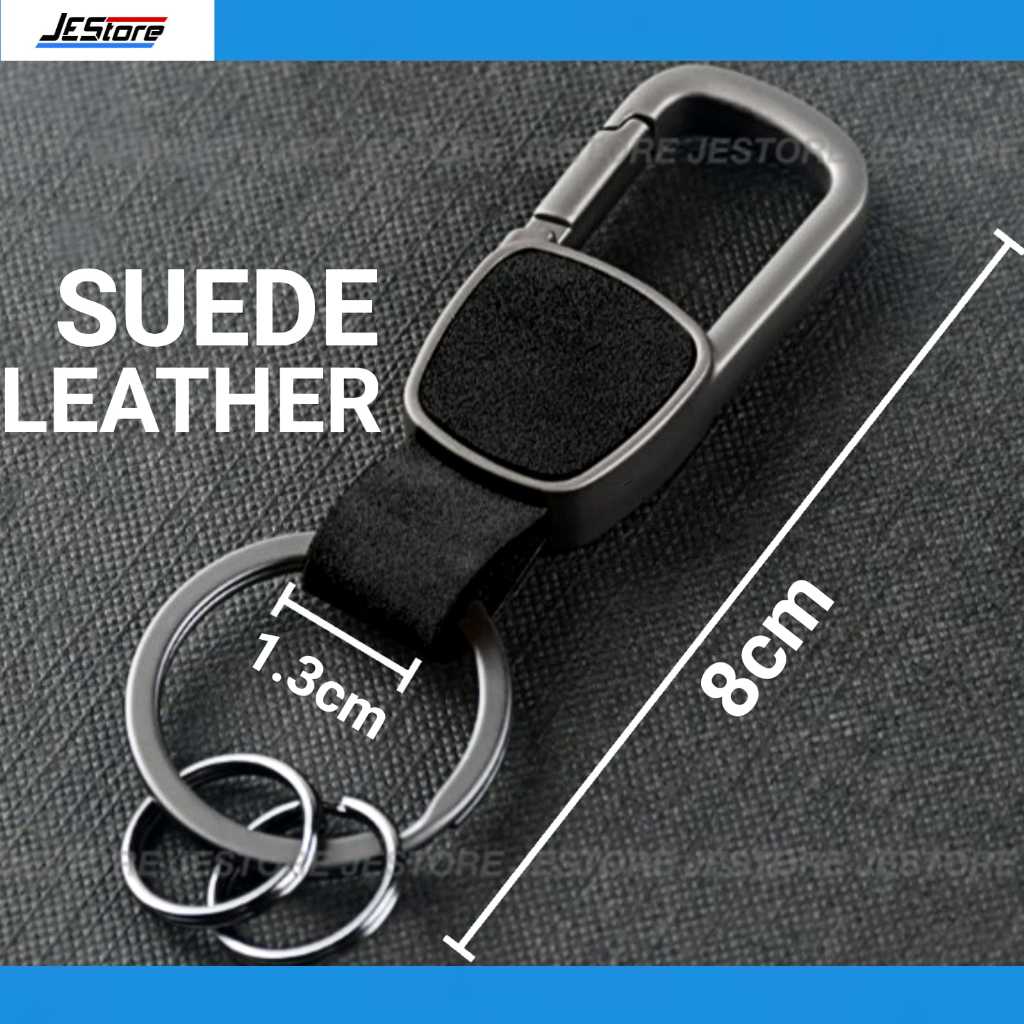 KEYRING HOOK WIDE LEATHER ( SUEDE ) PREMIUM KEYCHAIN GANTUNGAN KUNCI REMOTE MOTOR KUNCI MOBIL TAS CARABINER