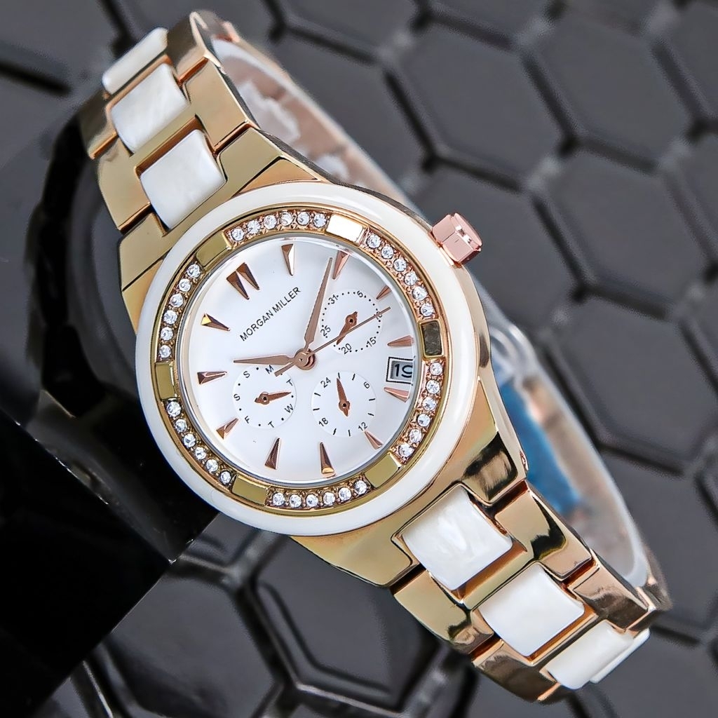 Morgan Miller MM17 Jam Tangan Wanita Original Quartz Diamond Rantai Mika Keramik Tahan Air Water Resist