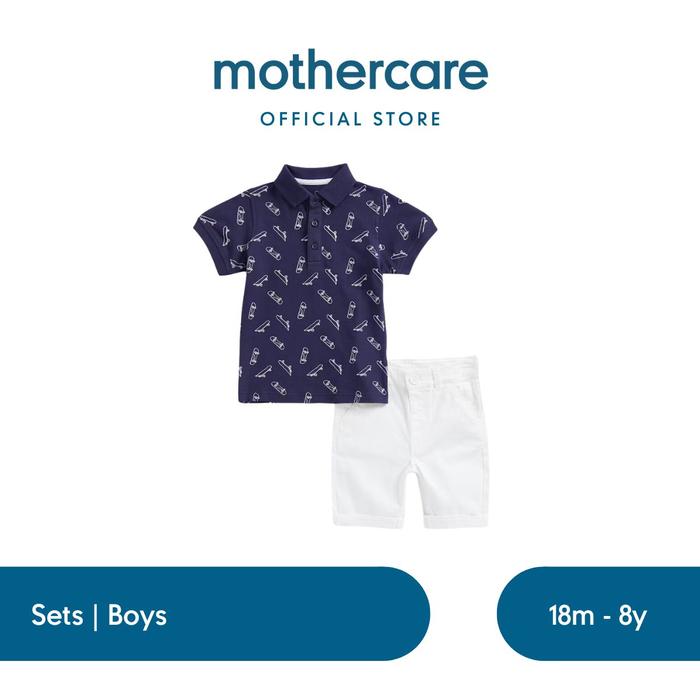 MOTHERCARE SKATE POLO SHIRT AND CHINO SHORTS SET - SET PAKAIAN ANAK LAKI-LAKI (BIRU) - 2-3 YEARS