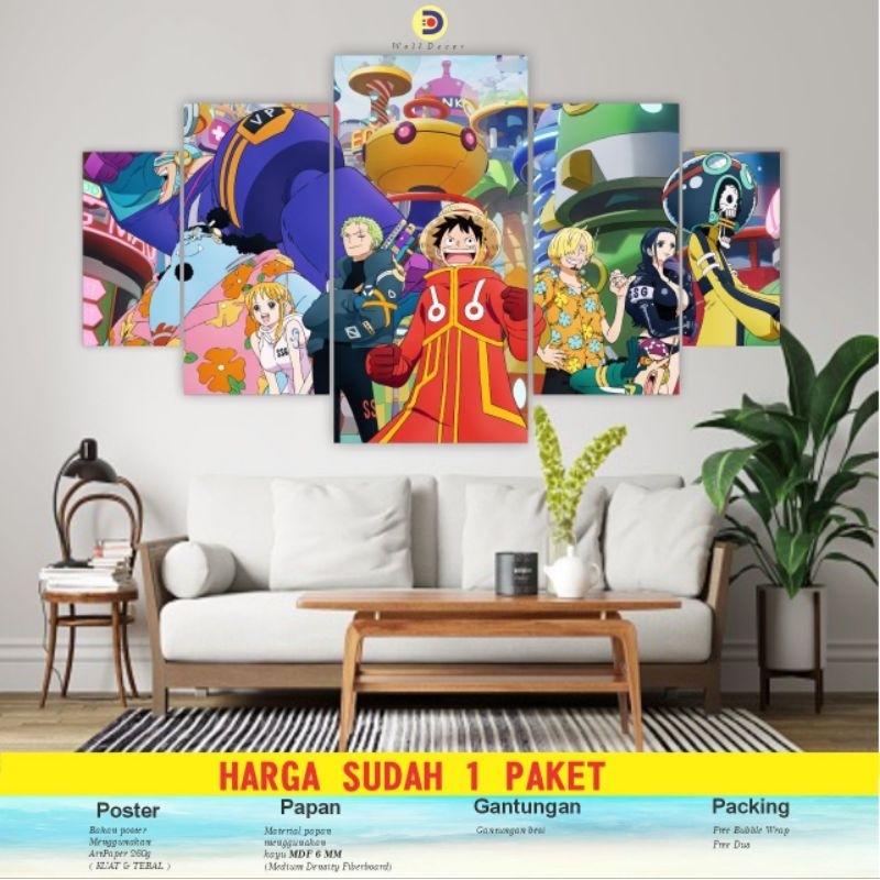 CIMON 1 Set Poster Kayu Anime One piece Pajangan Hiasan Dinding Staw Hat Pirates 5Pcs
