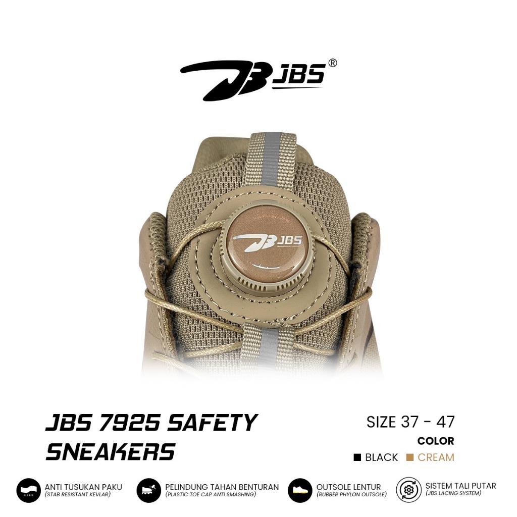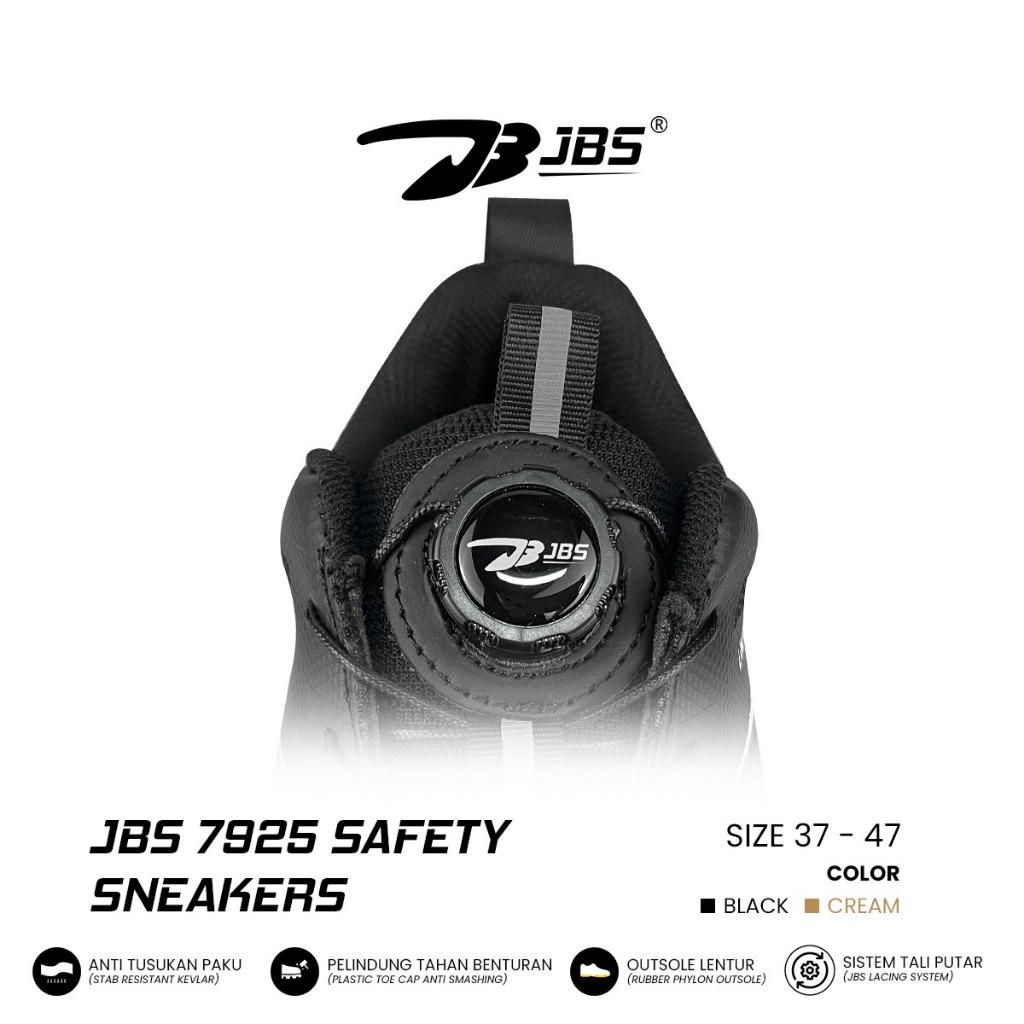 [Star] Sepatu Safety Sneakers JBS 7925 Plastik Toe Cap Tali Putar Anti Tusukan Anti Metal Detector Bandara