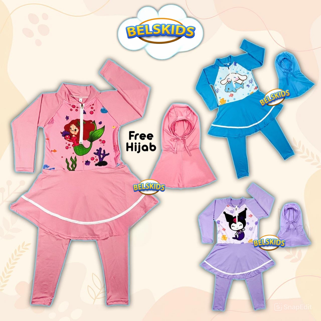 BELSKIDS Baju Renang Anak Panjang Karakter Rok Inner Spandek Premium Hijab - Sport