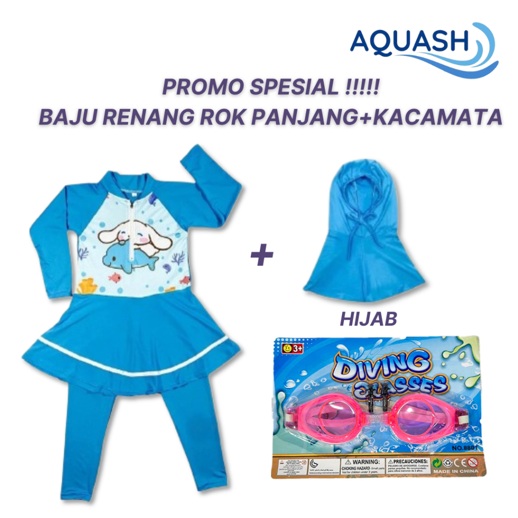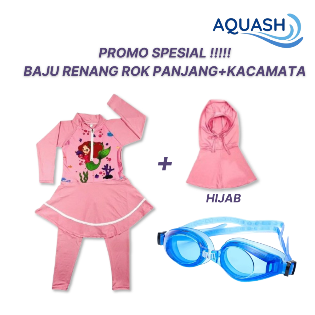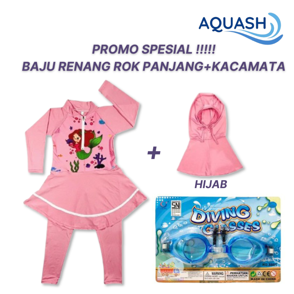 Baju Renang Anak Perempuan Rok Hijab Usia 3,4,5,6,7,8 Inner Celana Panjang Bahan Katun Spandek Karakter