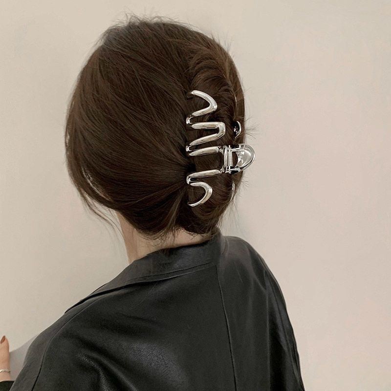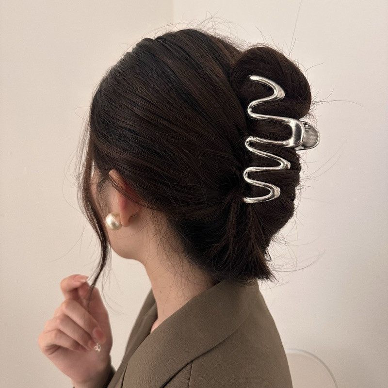 Pretty Stuff - Minimalist Wave Metal Hair Claw Hair Clip 10,5cm / Jepit Rambut Metal Besi / Jedai Korea