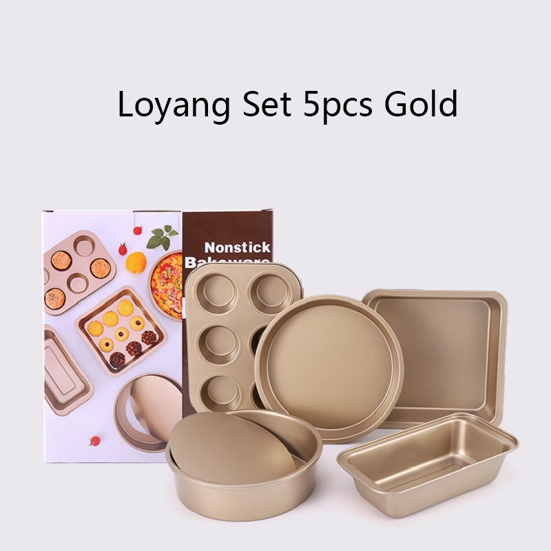 Loyang Set/5pcs Baking Tool set G0.LDen Series Non Stick Coating / Brownies / Loaf Pan / Pizza / Muffin