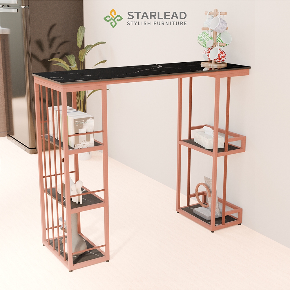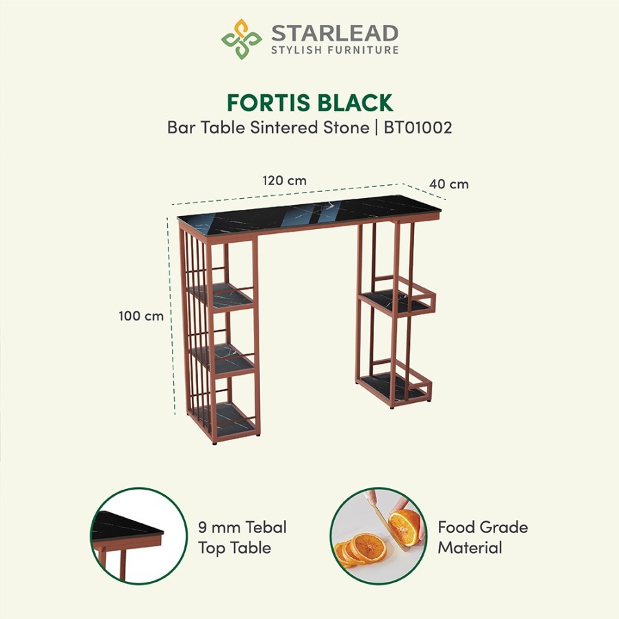 STARLEAD Meja Bar Minimalis Sintered Stone Fortis Black - Bar Table Meja Makan Tinggi Minimalis Apartemen