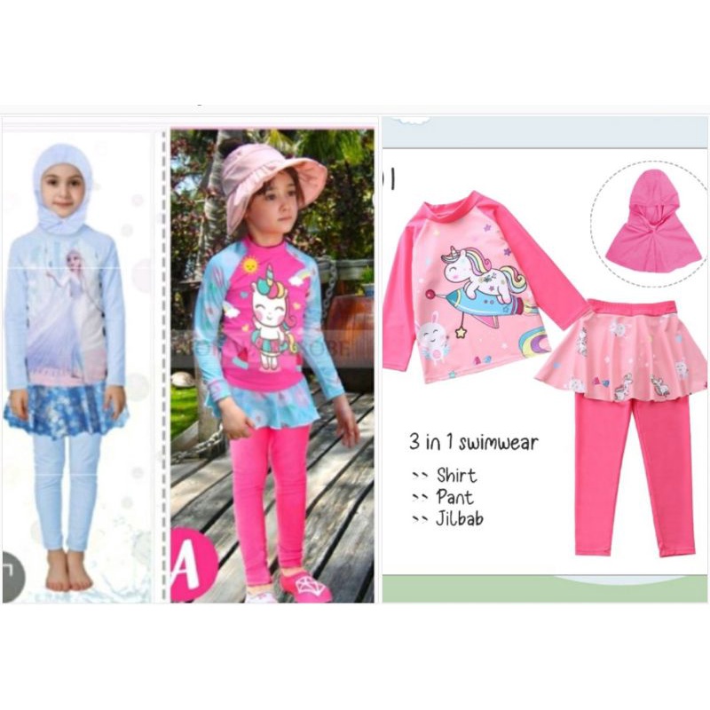 BAJU RENANG ANAK / BAJU RENANG ANAK PEREMPUAN MUSLIM / BAJU RENANG LENGAN PANJANG CELANA PANJANG / BAJU RENANG POP IT UN