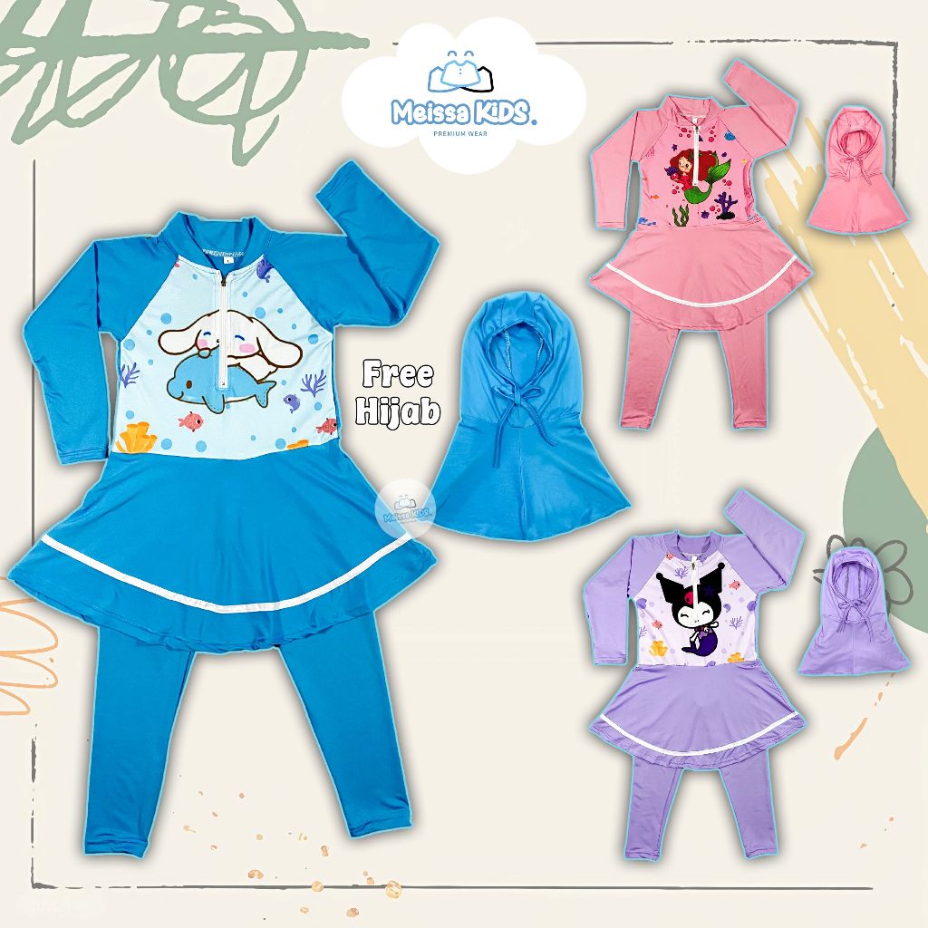 Meissa Baju Renang Anak Panjang Karakter Rok Inner Spandek Premium Hijab