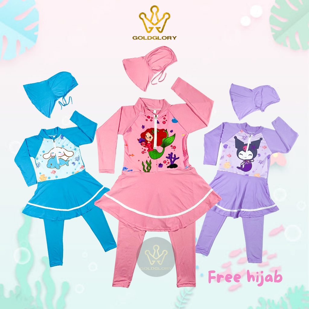 Baju Renang Anak Panjang Karakter Rok Inner Spandek Premium Hijab - LDGLORY - Sport