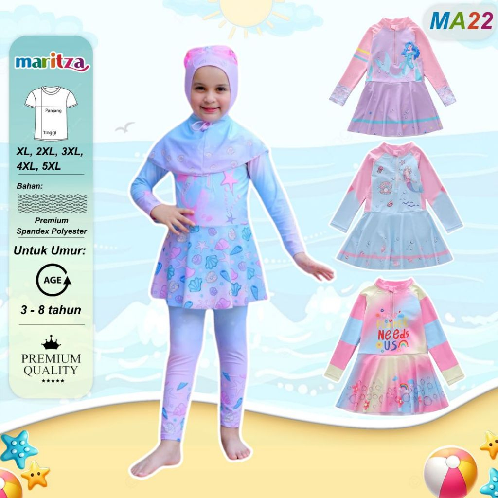 Maritza MA22 Baju Renang Anak Perempuan/Baju Renang Anak 1-8 tahun/Baju Renang Anak Hijab Resleting