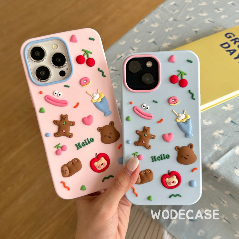 [Star] WODECASE Bear and Dessert Silicone Case Timbul untuk iPhone 11-16 Pro Max