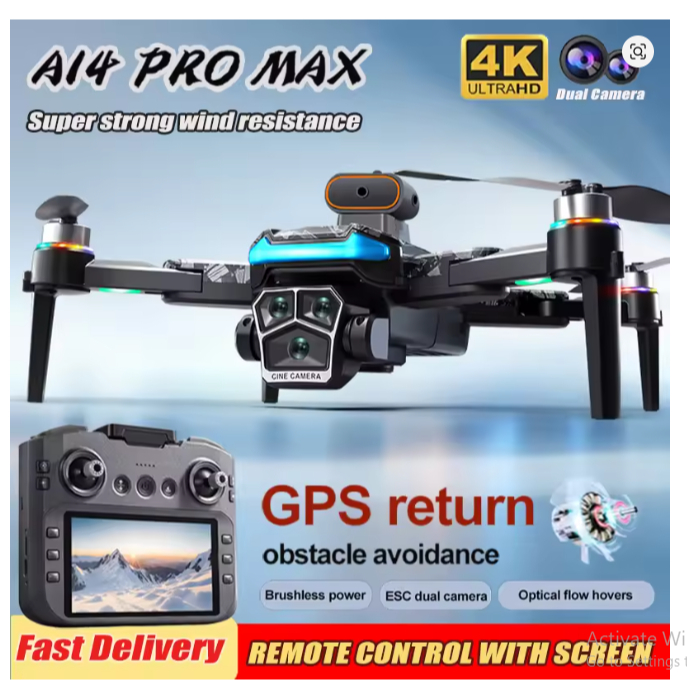 A14 PRO MAX GPS Drone 5G 8K HD Aerial Photography Dual Camera Dron with Screen Remote Control Obstacle Avoidance, RC Qua