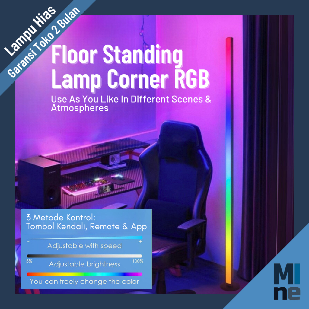Lampu RGB Lantai Smart LED Standing Lamp Corner RGB with Remote Lampu Hias Smart LED Floor Lamp