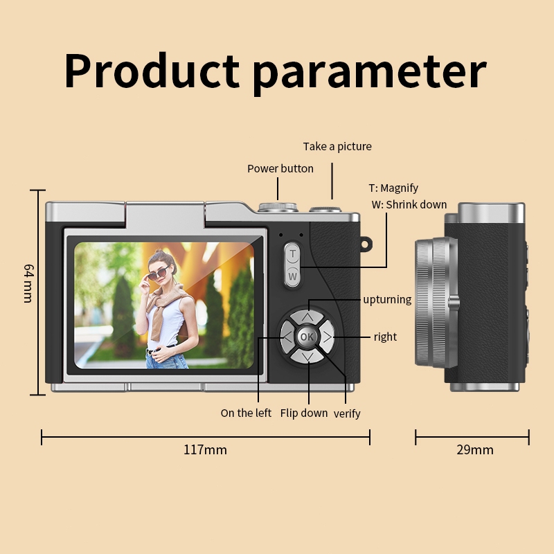 【Free 32GB Memory Card】T-JERZEN 4K Kamera Digital 48MP HD Kamera Digital Dengan Flash Fotografi Layar Flip 180° Zoom 8X