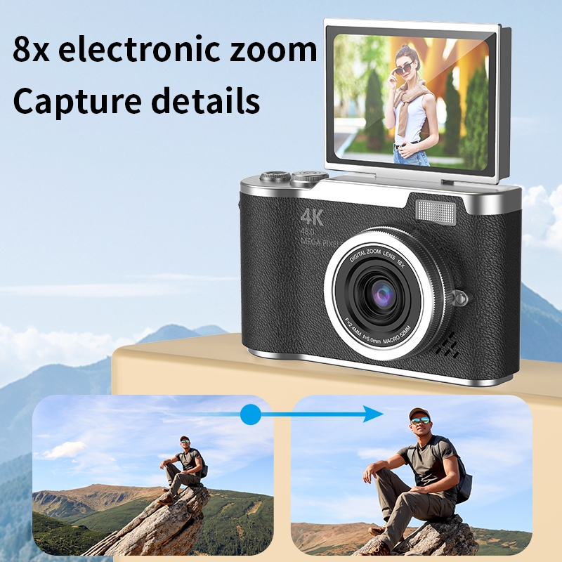 【Free 32GB Memory Card】T-JERZEN 4K Kamera Digital 48MP HD Kamera Digital Dengan Flash Fotografi Layar Flip 180° Zoom 8X