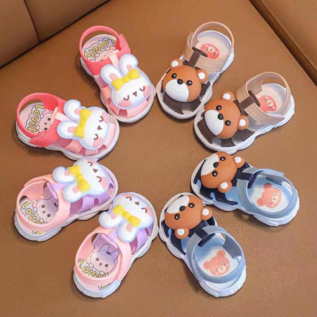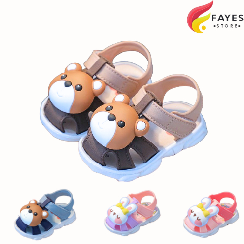 sandal anak FAYES BEAR&RABBIT 3D Sandal Balita Anak Laki-laki Perempuan Bahan Karet Karakter Boneka Bear Lucu Import kek