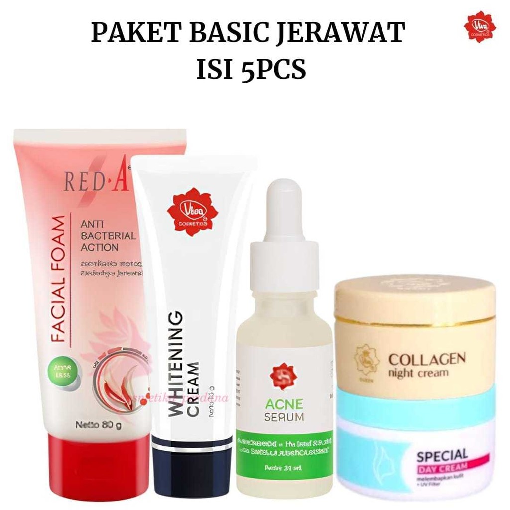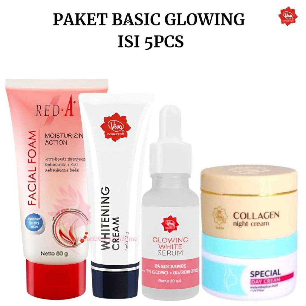VIVA BASIC PAKET PERAWATAN WAJAH 5IN1 FACE WASH RED-A FLEK GLOWING JERAWAT KUSAM PENUAAN ISI 5PCS