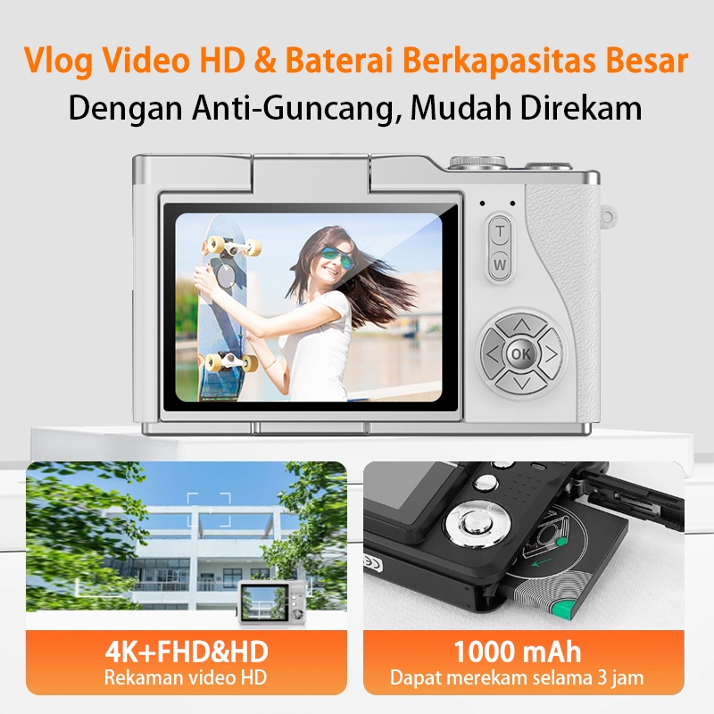 Akona 【Free 64G】Kamera Digital 48MP 8X Zoom Kamera Digicam Layar Balik 180° LCD 2,4 Inci 4K Vlog Anti Goyang Filter Kame