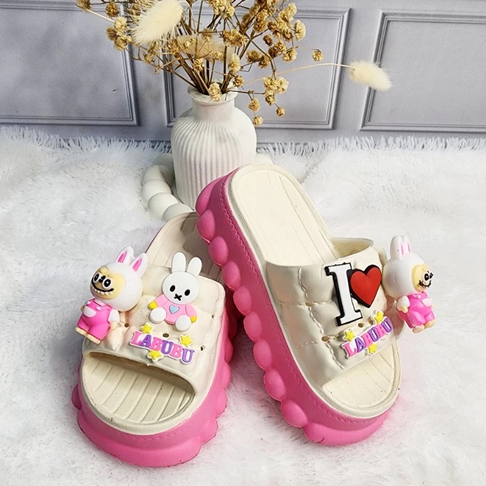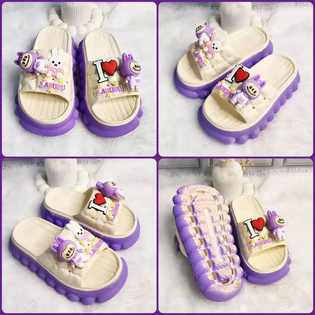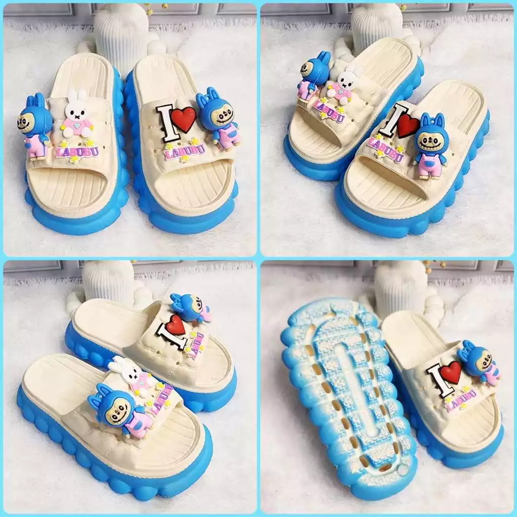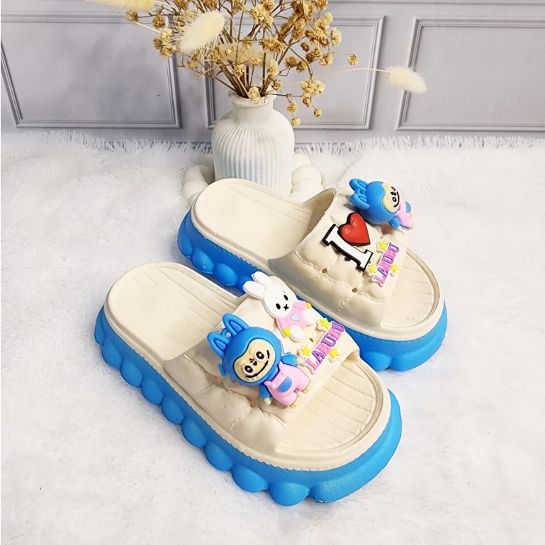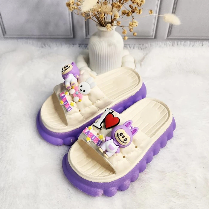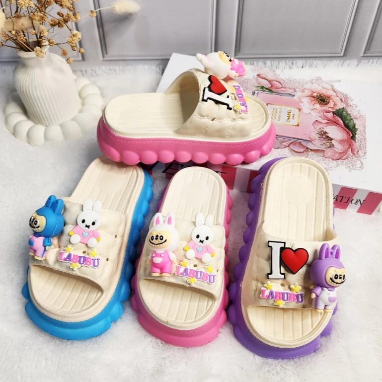 sandal anak Sandal Selop Labubu I Love You Sendal Slop Anak Perempuan LABUBU Puffy Pop-pop Anti Licin