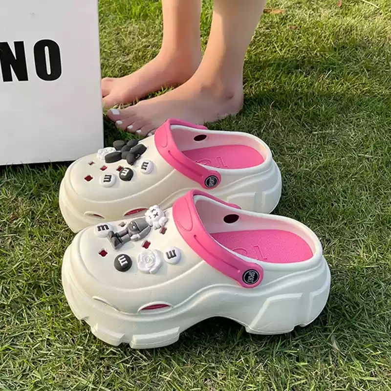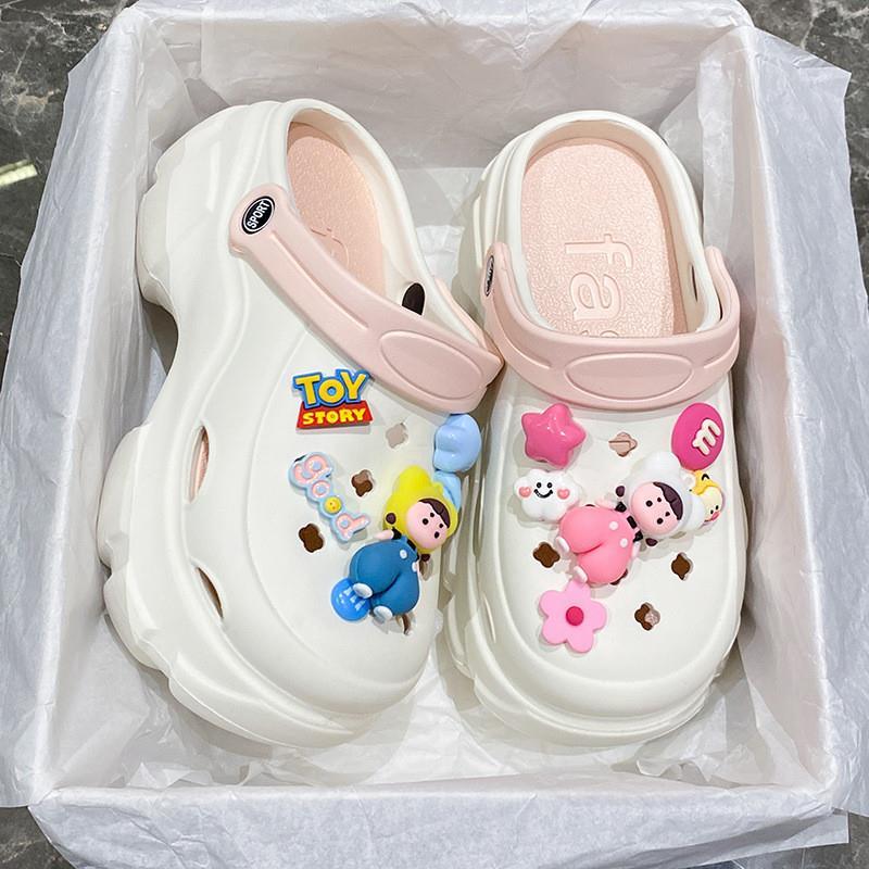 sandal anak Sandal lubang 5,5 cm dengan sol tebal untuk wanita musim panas 2025 baru, anti-selip, tinggi dengan kepala e