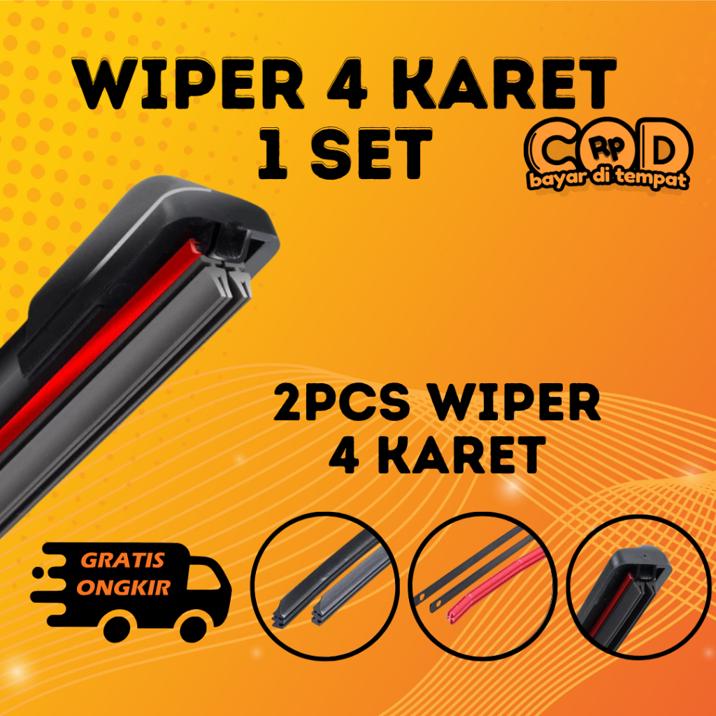 SATU SET WIPER 4 KARET SEPASANG UNIVERSAL WIPER QUAD 4 LAPIS KARET
