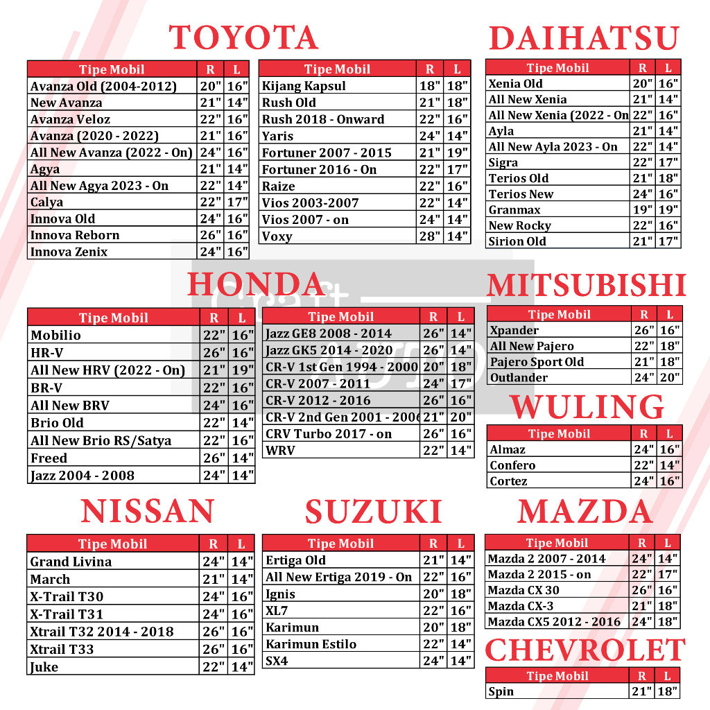 Wiper Mobil Frameless Bosch Satuan 12 14 16 17 18 19 20 21 22 24 26 28