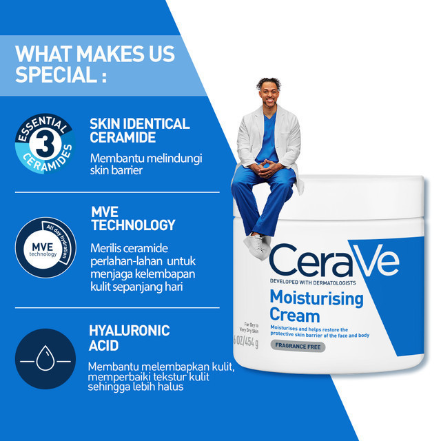 CeraVe Moisturising Cream 454g - Skin Barrier Repair Moisturizer with Ceramide for Dry to Very Dry Skin [Pelembap untuk