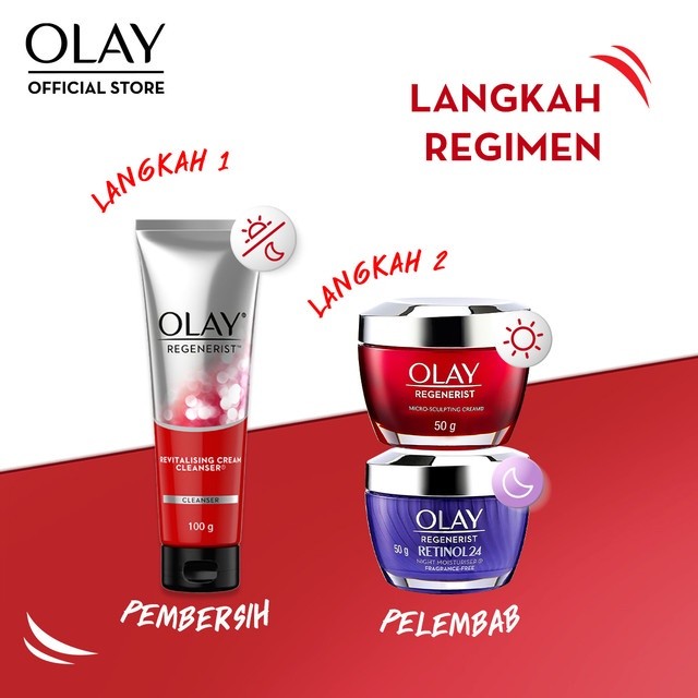 Olay Regenerist Set Lengkap Sabun Cuci Muka Cleanser & Pelembab Pagi & Retinol 24 Pelembab Malam Krim Moisturizer Anti A